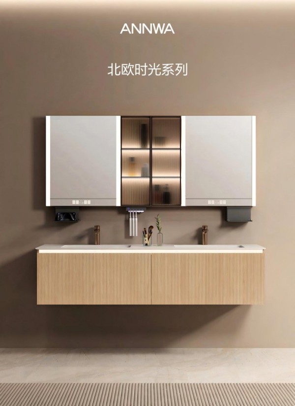 在快节奏的现代生活中,家是心灵的港湾。安华深谙人们对自然本真与智慧便捷的双重渴望,以匠心融合东方木韵美学与前沿智能科技,打造「木曦」与「北欧时光」两大系列定制浴室柜,为都市精英重塑一方卸下疲惫、悦享从容的浴室空间。