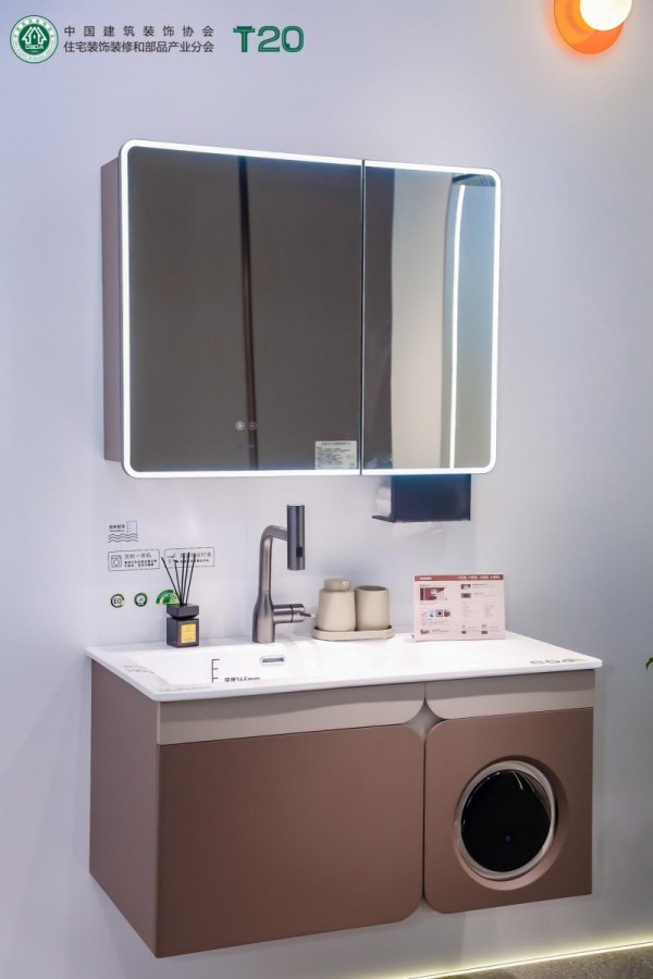 锦柔系列洗烘一体浴室柜,创新嵌入洗烘一体机,专注贴身及小件衣物洗护,避免混洗困扰;镜柜环绕光、科学分区收纳模块、E0级环保板材与持久抗菌表面,兼顾美观与健康,特别适合母婴家庭使用,打造安心绿色的家居环境。