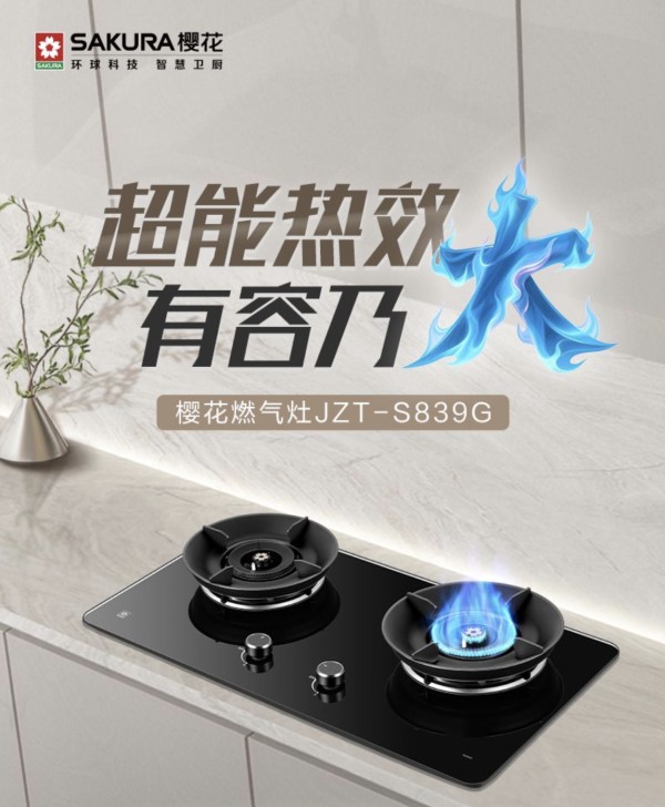 餐桌上的每一道佳肴,都承载着对家人的细腻关怀。樱花燃气灶S839G以零秒开阀实现即点即燃,避免长时间按压的等待,让火力随心而动。5.2kW超猛火焰让每一次爆炒都能轻松驾驭食材,锁住食材的鲜香质感;76%超高热效确保每一份燃气都被充分利用,让家庭烹饪既高效又节约。