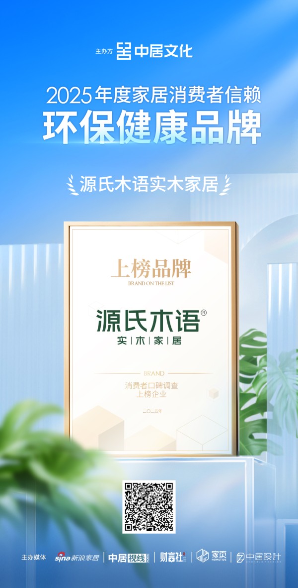 在本次评选中,源氏木语凭借优越的产品质量、良好的消费者口碑,获得消费者和行业的高度认可,从上百家家居品牌脱颖而出,荣膺“2025年度家居消费者信赖质量标杆品牌”、“2025年度家居消费者信赖环保健康品牌”称号,全面印证其作为实木家居赛道头部品牌的综合实力与行业领导力。