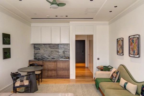 55㎡灵动空间:3.6米层高,尽收澳门海城景观;开放式厨房设计与嵌入式收纳系统,营造通透的生活场域,并有效扩大储物空间,让生活有条不紊。