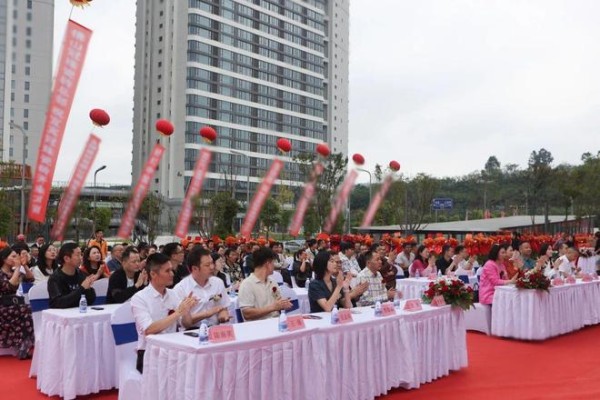 领导嘉宾代表们上台进行剪彩揭幕。金剪齐开,彩带飘扬,瑞狮献瑞,在全场热烈的掌声中,宜宾冠珠正式扬帆起航!