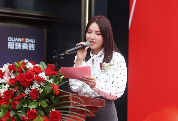 曹建材商贸有限公司副总经理海翼向所有到场的嘉宾领导表示热烈的欢迎和诚挚的感谢,并发表致辞。她提到,作为冠珠瓷砖优秀经销商代表之一,宜宾冠珠的盛装开业,是与品牌深化战略合作、共拓市场版图的又一重要里程碑,期待与合作伙伴们继续携手同行,为宜宾当地消费者带来更多高品质家居体验。