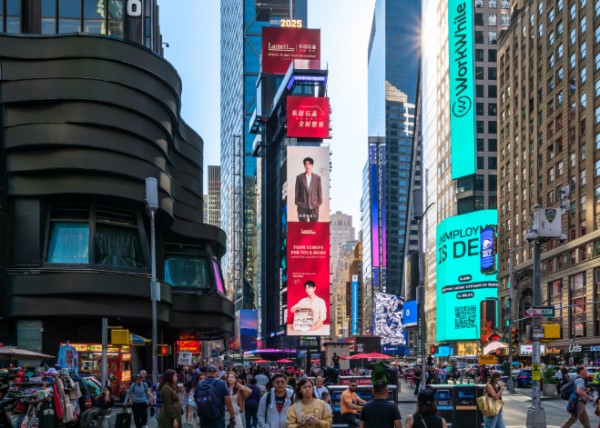 Lamett乐迈石晶携手肖战登陆纽约时代广场大屏