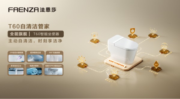 另一款 T60 智能坐便器则升级全链路动态自洁科技,以 “T60 自清洁管家:全域净菌,守护健康” 为核心主张。其自洁覆盖座圈、水路、洗护、水封、内壁、除臭六大核心环节。让洁净渗透使用全场景,以自动防护姿态,让净菌成为 “无感却安心” 的日常,为用户带来全天候的洁净舒适体验。