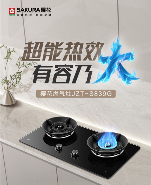 餐桌上的每一道佳肴,都承载着对家人的细腻关怀。樱花燃气灶S839G以零秒开阀实现即点即燃,避免长时间按压的等待,让火力随心而动。5.2kW超猛火焰让每一次爆炒都能轻松驾驭食材,锁住食材的鲜香质感;76%超高热效确保每一份燃气都被充分利用,让家庭烹饪既高效又节约。