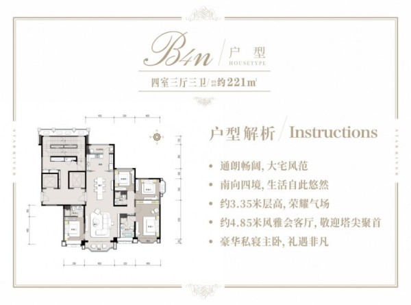 星质人居,不止于硬件的堆砌,更在于对客群需求的深度回应。221㎡全新户型,匹配宽厅时代,重构世家生活场域。超大LDKG一体化开放式互动空间,演绎多重生活场景;主次卧、动静分区的科学规划,各得其所又彼此呼应;约3.35米超规制层高,宽阔明朗,采光视野俱佳。每一处格局规划皆能洞见对生活的哲思,让每一位家族成员皆能在此遇见更好的人生。