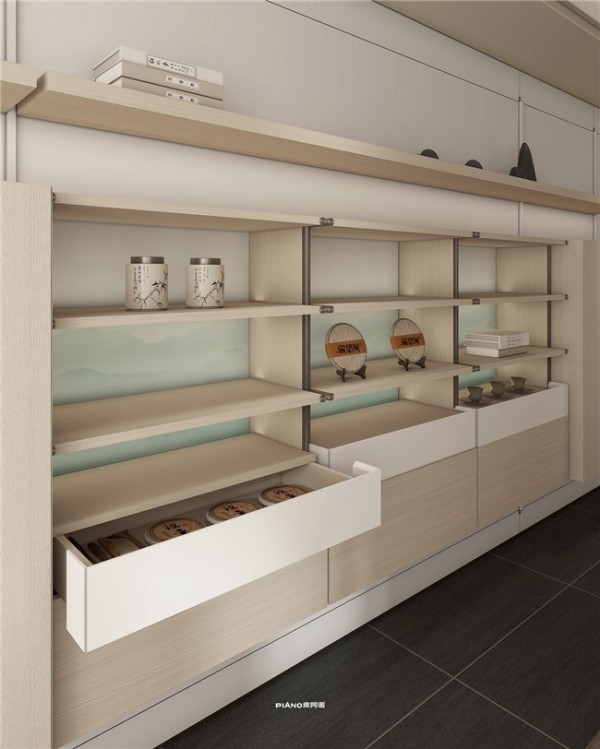 值得关注的是,皮阿诺协奏・梦华系列的榫卯柜体工艺并非泛用设计,而是精准落地于衣帽间、茶室及典藏室三大核心空间,实现工艺价值与使用场景的高度匹配。