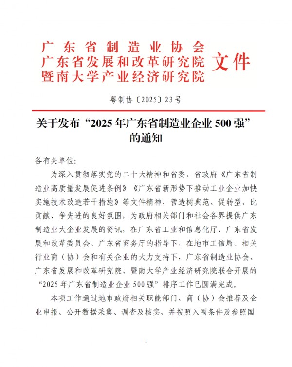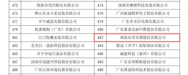 近日,备受行业关注的“2025广东省制造业企业500强”名单在广东省制造业协会峰会上正式揭晓。珠海双喜电器股份有限公司凭借其在智能制造领域的深度布局和创新突破,以民族品牌的硬核实力,跻身广东省制造业标杆阵营。
