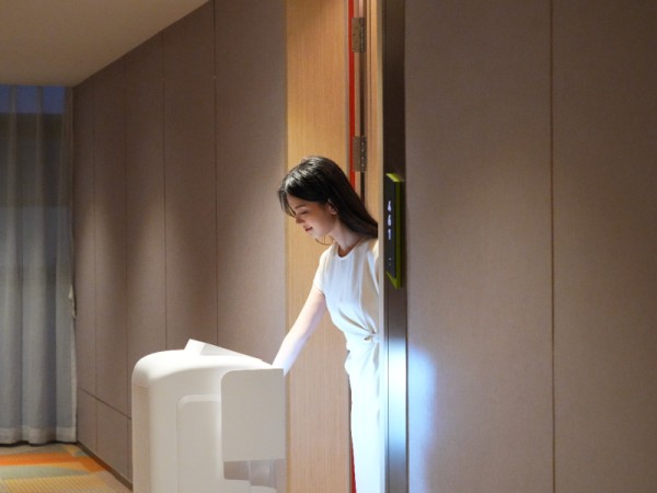 其次,对于取物不便及安全隐忧,解决方案引入了机器人送货上门服务。无论是外卖、快递还是酒店物品,均可由机器人精准配送至房门口。家长通过客房电视屏幕即可实时查看机器人配送进度,清晰透明,全程免去与外人接触的可能,有效降低了安全隐患。这让家长可以更安心地陪伴孩子,无需再为短暂的离开而焦虑。