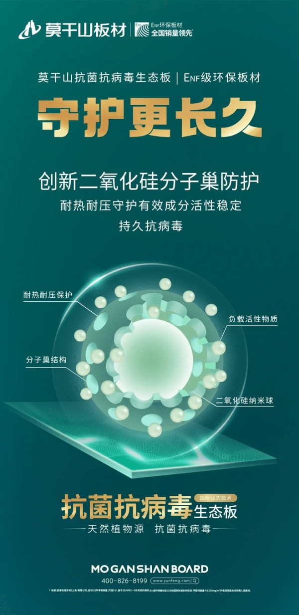 从攻克植物源核心技术,到收获市场与行业的双重认可,莫干山抗菌抗病毒板的领先之路,彰显了自然与科技结合的强大势能。作为中国绿色生态家居领军品牌,我们始终将绿色、健康、安全融入产品研发的每一个环节。展望未来,我们将持续深化植物源技术创新,不仅推出更具竞争力的健康产品,更要以标杆之力引领行业绿色转型,为您和家人的健康生活保驾护航,共筑美好家居新图景。