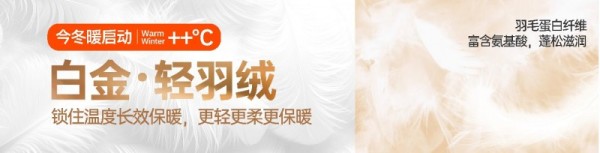 纯棉居物坚持,真正的温暖应当轻盈如羽、柔软如云、贴身如肤。「白金·轻羽绒」系列保暖衣从材质源头革新,融合多项科技成果,实现“轻、柔、暖、润”四维一体,颠覆消费者保暖认知。