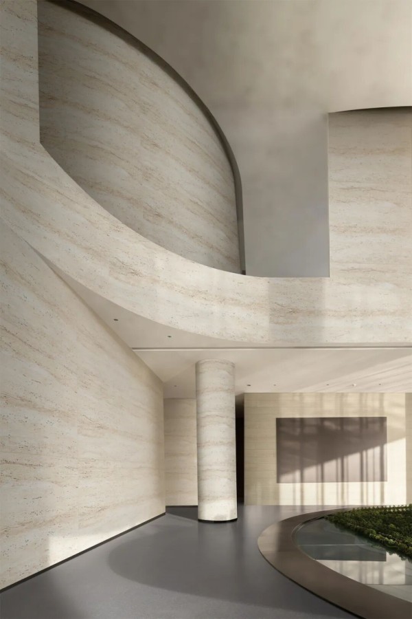 生态软瓷以轻薄之躯、柔软之态,兼具极强塑形性。它突破了传统建材的局限,不仅运输方便、施工便捷,有效减轻建筑负荷,更避免了墙体的冰冷坚硬,随物赋形的特性让曲面艺术与绿色科技完美交融,成为建筑的点睛之笔。