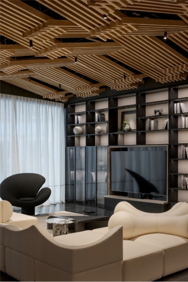 东莞概念店(APIDA获奖作品):由设计师胡涛打造,以“当代氛围感生活叙事”为核心,打破传统展厅框架。通过过渡庭院、社交客厅与仪式感楼梯的空间叙事,以及金属、木作、玻璃与石材在光影下的精妙对话,构建出一个沉浸式的生活美学场域。