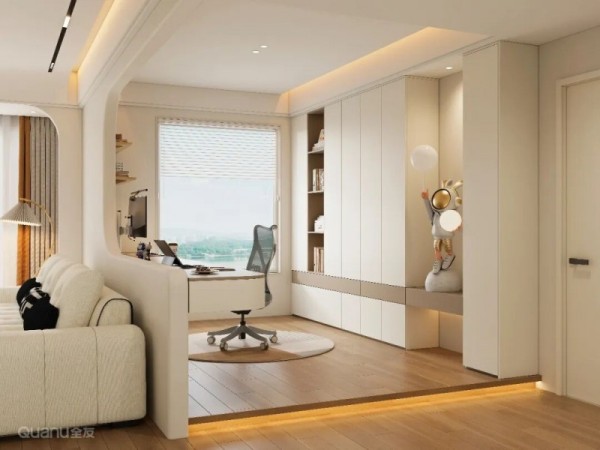 全友案例丨120㎡现代风,半墙隔断装出客厅+书房!