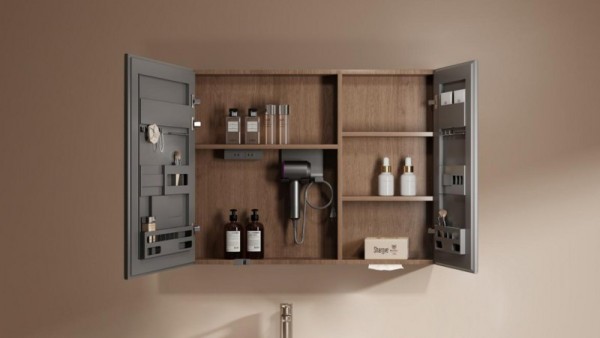 宋式美学强调“格物致知”的理性精神。安华“宋影”系列以此为内核,构建了高效科学的收纳系统。镜柜款产品搭载主柜与镜柜的科学分区,并创新采用3.0镜背收纳系统,让各类洗漱用品与细小物件各得其所、完美“隐身”。隐藏式纸巾孔、吹风机专属收纳位(配备插座)等人性化细节,于无形中理顺生活琐碎,让晨昏洗漱从容有序。
