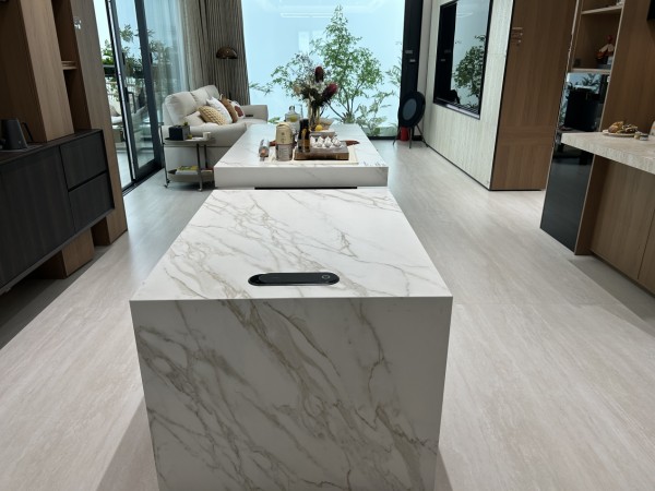 德赛斯岩板卡拉卡塔以其天然大理石纹理与科技性能,为中海样板间注入艺术感与实用性。厨房区域通过岩板无缝拼接,形成视觉统一的烹饪与社交空间,既满足中国家庭对厨房功能性的高要求,又通过材质升级规避传统住房装修的痛点。其价值不止于提供一套厨房解决方案,更是为国民好房子提交了一份兼具美学与硬核实力的生活提案。