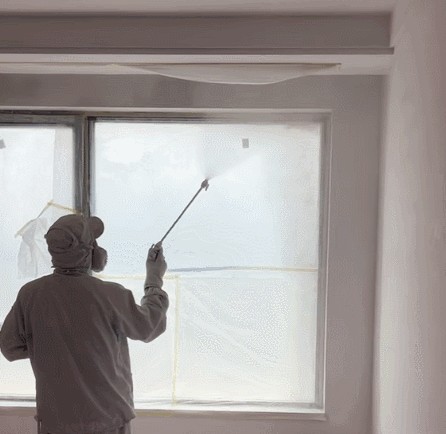 如果使用喷枪,气压调到0.3-0.5MPa之间,喷枪离墙面大约30-50厘米,匀速移动。气压太高或离太近都容易喷出气泡。