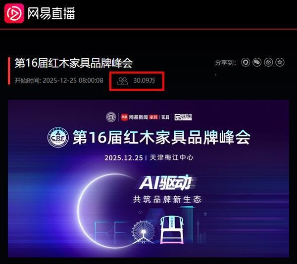 红木品牌峰会当日,网易直播平台进行了实时直播,其直播间突破30万人在线,即便无法亲临现场的观众,也能通过直播实现“云参会”,极大扩展了受众边界。