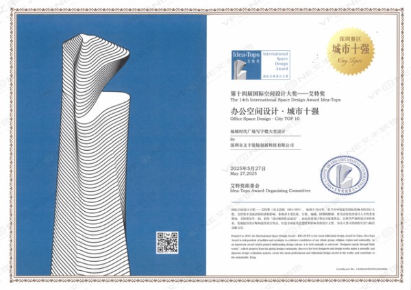 文丰装饰的获奖,离不开系统化企业实力的坚实支撑。自2009年成立以来,公司深耕公装领域多年,构建了完整的设计施工一体化服务体系。作为持有装饰装修一级、设计乙级、建筑施工总承包二级、机电与钢结构二级等全系列资质的企业,文丰装饰不仅将艾特奖、装饰金鹏奖等权威设计荣誉收入囊中,更获评国家高新技术企业、专精特新企业及数字化建造创新企业,资质与荣誉兼备,成为众多企业选择深圳写字楼装修、深圳办公室装修服务的信赖之选。