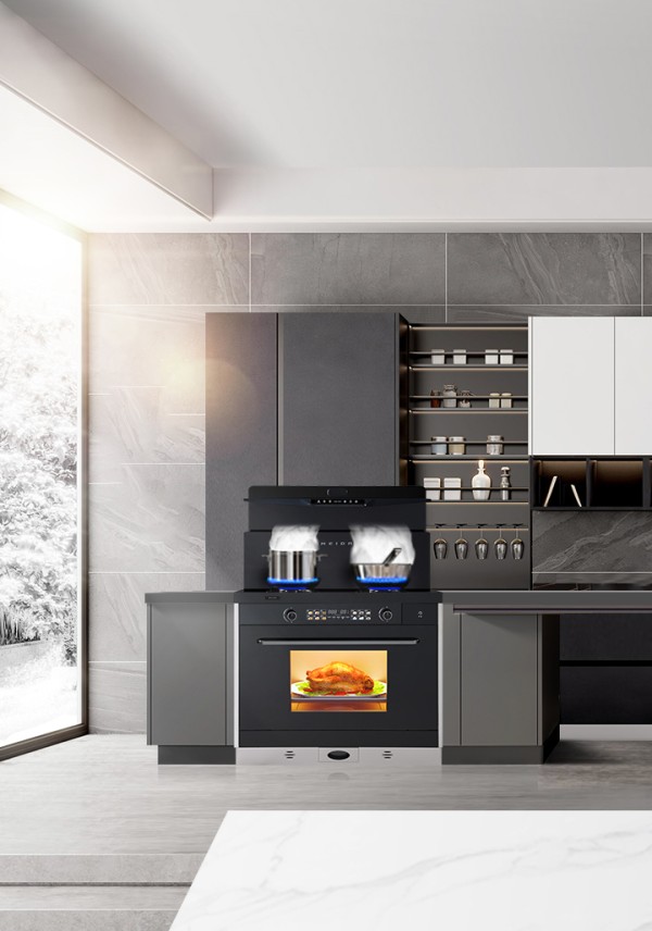 · 视觉之净: 一体化的流畅设计,取代了传统烟灶的突兀与笨重。开放式厨房从此畅行无阻,厨房成为家居美学的延伸。