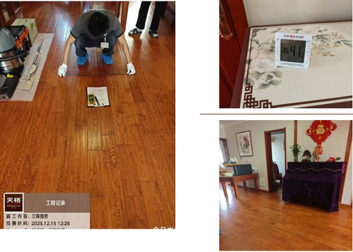 更让用户记忆深刻的是一个微小却见真心的细节。当他询问三保服务工程师高师傅,保养地板是否需要地板油地板蜡之类的东西时,高师傅的回答只有两个字:"清水。”这句简单而笃定的回应,以及专业细致的现场,让用户看到了天格三保服务背后的质朴初心。不为推销,只为用最专业、最纯粹的方式,守护好每一位用户家的日常。