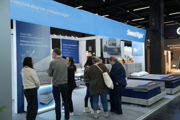在产品层面,甜秘密旗下 SweetNight 品牌聚焦技术驱动睡眠解决方案,重点展示了专为欧美“热睡人群”研发的专利“凉感系统(CoolNest® System)”,精准改善夜间闷热等体验痛点;Novilla 则以舒适为核心,提供兼顾品质与性价比的睡眠产品,现场获得多位欧洲专业买家的积极反馈。甜秘密欧洲拓展高级经理欧阳婉彤表示,国际市场正由“参数导向”转向“功能真实性与长期体验”,这也持续推动企业深化全球布局与技术创新。