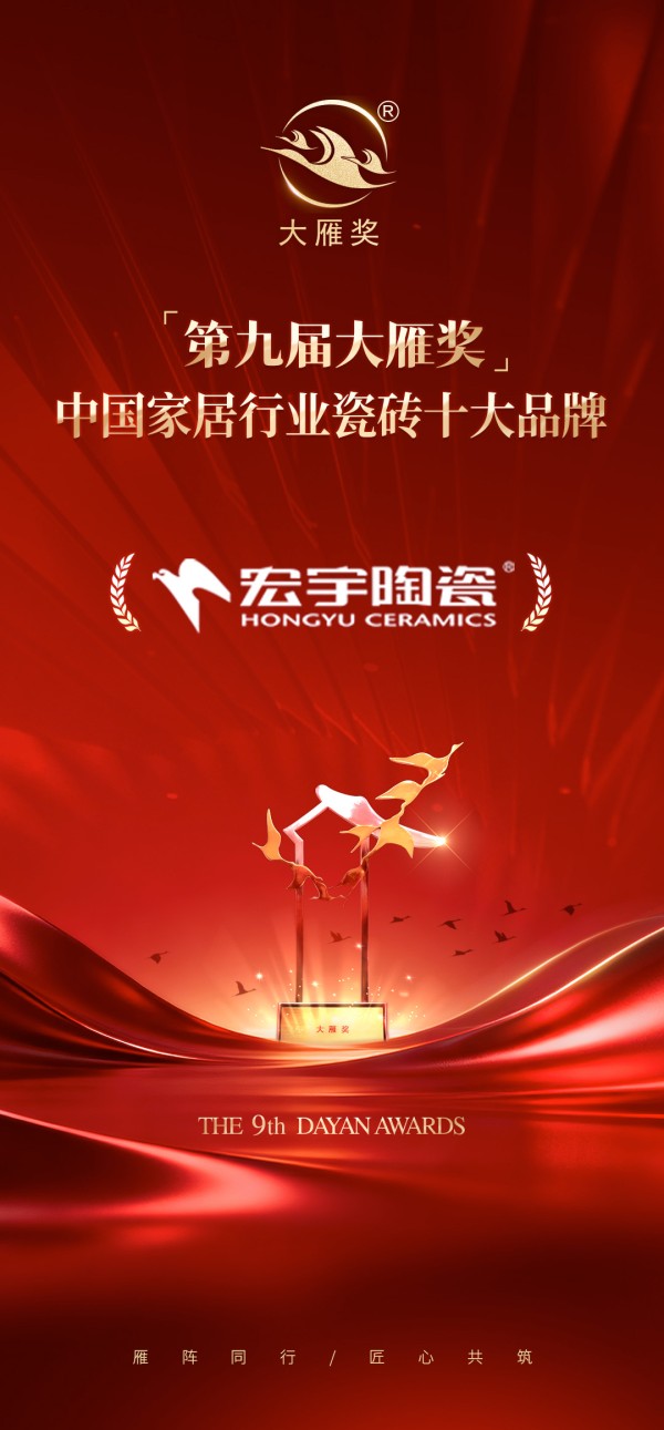 业界典范|宏宇陶瓷荣膺「第九届大雁奖·中国家居行业瓷砖十大品牌」奖项