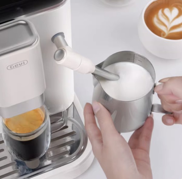 不止便捷省心,更能拉满团圆氛围,适配每一个新年场景。Gevi咖啡机自带高颜值简约设计,适配各种中国家居风格,A4大小的机身小巧不占地,不管是放在厨房台面还是客厅角落,都能成为一道精致的点缀,不突兀还能提升家居质感。小白也能轻松解锁拉花自由,一键蒸汽打奶泡,绵密细腻、均匀不起坨,适配带金属棒(新手模式)和不带金属棒(进阶模式)两种方式,新手也能轻松做出好看又好喝的拉花咖啡,拍照发圈有面子,亲友相聚时,一杯自制拉花咖,就能拉近距离、增添欢乐。