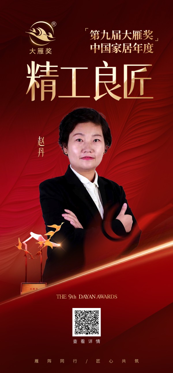 喜报!赵丹女士荣获「第九届大雁奖·中国家居年度精工良匠」奖项