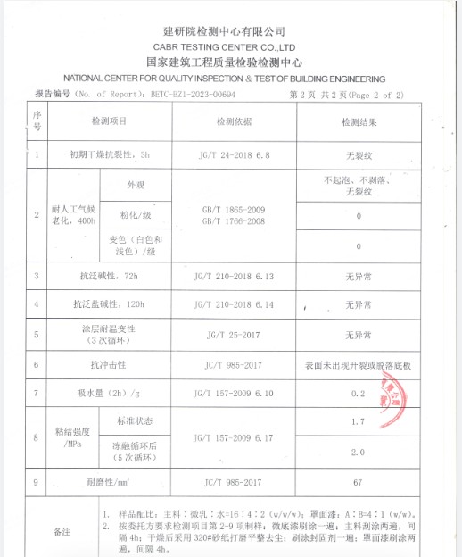 基于(CTI华测检测报告BED20Q000516001C)的实测数据,Vanlei万磊微水泥在瓷砖基面上的关键性能表现如下:
