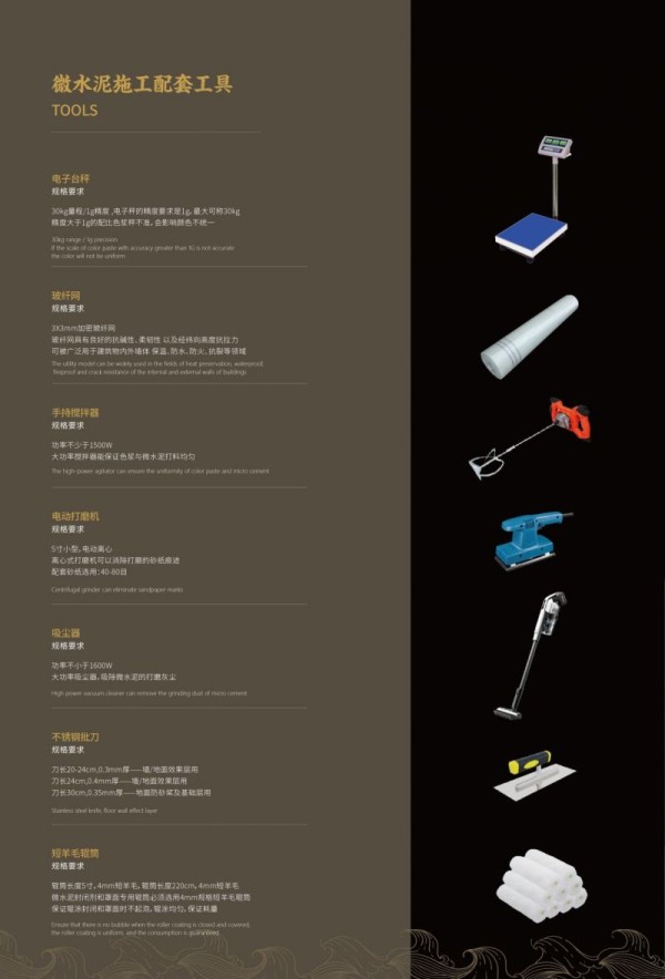 层间间隔:底漆、微水泥层、面漆之间必须保证6-8小时或24小时间隔