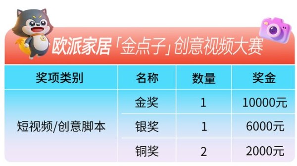 欧派×创意星球 | 2026欧派家居「金点子」创意视频大赛正式启动!