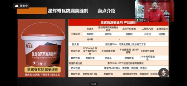当晚直播间热度持续走高、互动如潮,百余位终端伙伴云端齐聚,共同见证“星辉脊瓦防漏美缝剂”的正式亮相。本次发布会不仅是星辉瓦业屋面系统布局的关键里程碑,也为终端开启了一场引领行业新势的开门红盛宴。