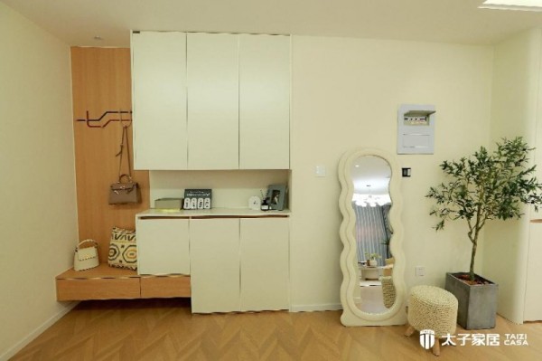 太子家居作为川内全屋整装定制公司的头部企业,在全屋定制领域有着极强的实力和累积了大量的经验。全屋定制不像买成品家具,需要你去适应它,而是反过来,让柜子“长”在墙里,让转角“活”起来。比如,针对让人头疼的狭窄玄关,太子家居的设计师会打造一门到顶的玄关柜,中间留出随手放钥匙的镂空区,底部悬空方便放常穿的鞋。客厅的电视墙可以变身集展示、藏书、收纳于一体的整面墙柜,杂物尽收其中,客厅瞬间清爽。