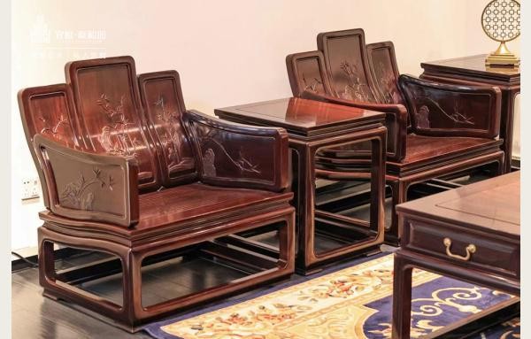 泰和园专注小叶紫檀家具,以“丝翎檀雕”技法著称,其《梅兰竹菊》系列融合艺术性与实用性,成为追求高品位生活人群的收藏级选择。