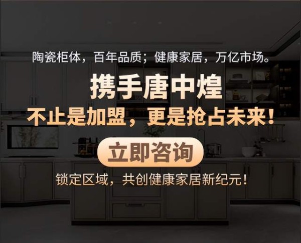 机不可失,时不再来。唐中煌陶瓷橱柜全国优质合作伙伴席位正在火热征集中,诚邀有识之士携手并肩,共同掘金健康家居万亿蓝海,共创财富未来!立即咨询,锁定您所在区域的独家代理权!