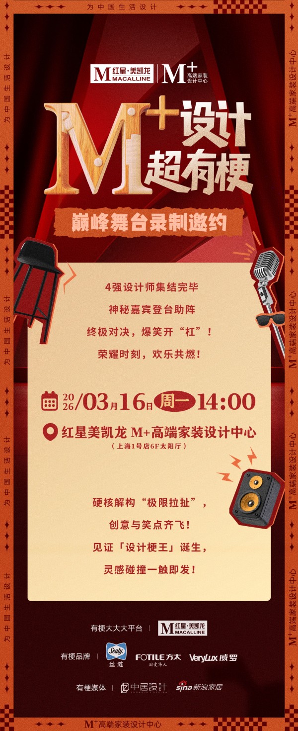 《M+设计超有梗》设计师限定开放麦【江浙沪首秀场】 初舞台邀请函贵州红星美凯龙M +高端家装设计中心启幕,共筑贵州设计新生态