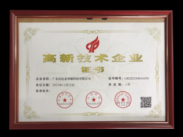 法比亚获国家级认可,再次获得“国家高新技术企业”殊荣