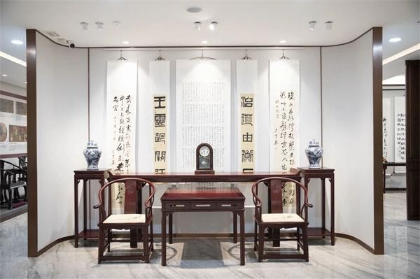 陈树娟:我们济南的CBD旗舰店可以说是应客户和市场的呼声而开,和以前的传统家具门店不太一样,这次我们把旗舰店做成了一个能走进来的城市文化客厅,也是一个可以亲身感受的红木美学体验馆,我们的文化艺术馆,也正式挂牌了,这里不光有高端精品的红木家具,还汇集了书画、奇石、铜艺、紫砂,这些传统文化雅玩,算是给传统文化爱好者打造了一个欣赏品鉴的自由小天地。