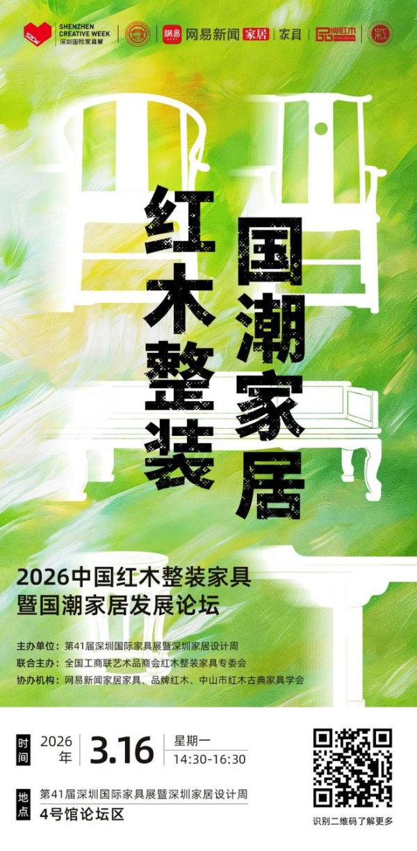 作为本届展会的重磅活动,2026中国红木整装家具暨国潮家居发展论坛将于3月16日在第41届深圳国际家具展暨深圳家居设计周4号馆论坛区隆重举行。