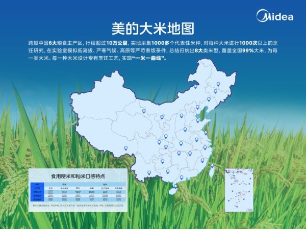 美的小家电深耕电饭煲领域32年,始终以用户需求为导向,在电饭煲核心技术领域持续研发探索,不断突破行业技术边界。加热技术上,从初代底盘加热到第5代花瓣立体IH加热,带来更均匀的IH加热技术;在内胆革新上,从普通涂层内胆到钛0涂层内胆再到天然纯炭内胆,打造更健康、安全、锁住大米香气的内胆。为了煮出更符合中国人口味的香甜好米饭,美的研发团队,历经17年研究,采集并建立1000多种米种庞大烹饪数据库,精心绘制行业首张“大米地图”,实现“一米一曲线”的精准烹饪,让全国各地都能烹煮出香甜可口的米饭。