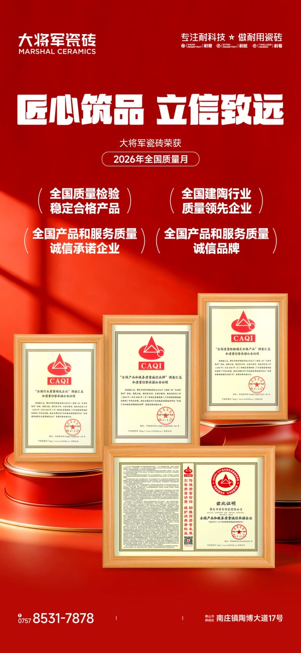 载誉前行!大将军瓷砖荣膺2026全国质量月四大奖项,再添品质新勋章