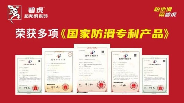 碧虎超防滑瓷砖六度蝉联【中国瓷砖防滑王】,荣获多项防滑发明专利,斩获【广东陶瓷头部品牌】、【防滑瓷砖销量冠军】、新华社【了不起的国货】、工信部【科学技术成果登记证书】、【陶瓷行业新一线品牌】等多项重磅荣誉;并作为超防滑瓷砖团体标准首席起草单位,主导制定【超防滑瓷砖制备技术规范】,引领行业规范升级。