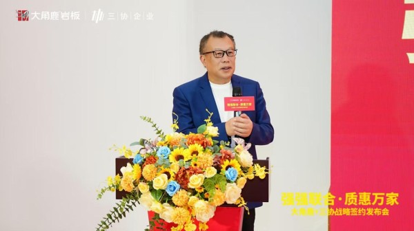 3月19日,以“强强联合·质惠万家”为主题的大角鹿岩板与三协建材战略签约发布会在佛山成功举行。