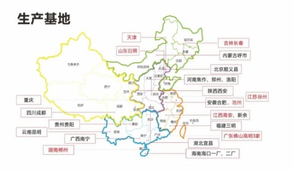 亿固集团 十大自营生产基地(红色)与100+生产工厂布局