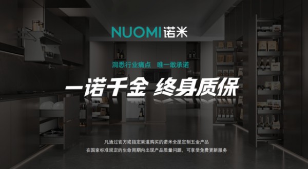 一诺千金·终身质保:2025年3・15国际消费者权益日,诺米正式推出“一诺千金·终身质保”服务,为行业首个且唯一推出该服务的高端五金品牌,承诺官方 / 指定渠道购买的全屋定制五金产品,在国标生命周期内出现质量问题可免费更新,服务覆盖橱柜功能五金、衣柜收纳五金等八大产品系统,并通过全流程管控确保落地。