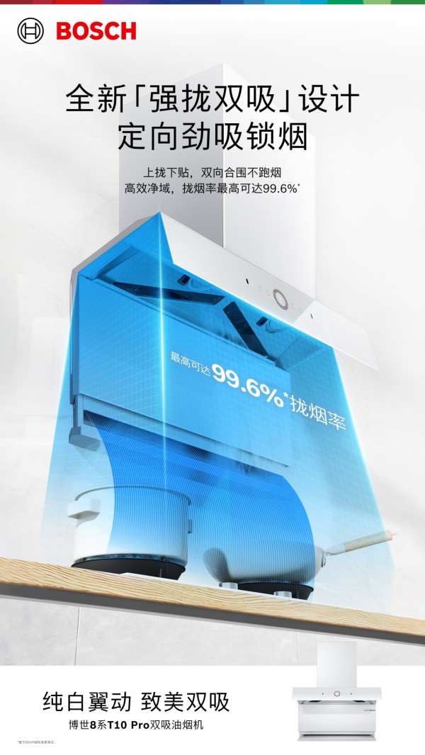 纯白翼动 致美双吸 | 博世 8 系 T10 Pro 双吸油烟机全新上市