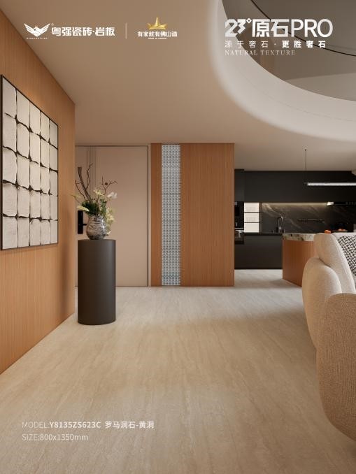 柔光质感温润不刺眼,素雅内敛,淡淡的米黄基底,暖而不艳,呈现石材天然层次,让空间在不同光影下皆呈现高级质感。