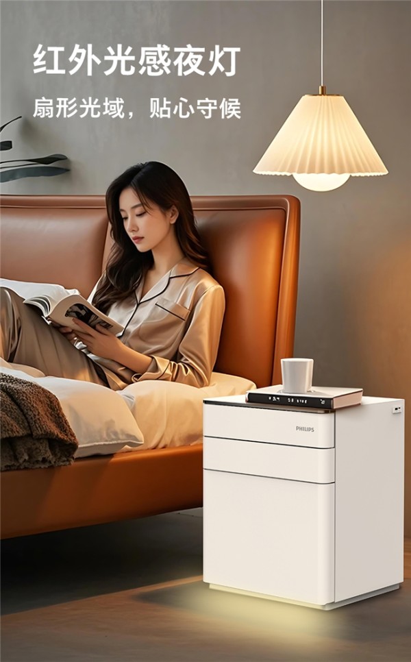 针对用户深夜取物时黑暗环境操作不便的困扰,飞利浦智能保险柜基于场景洞察打造差异化照明解决方案:SBX301在柜内标配专属内饰灯,开门瞬间自动亮起,柔光照明不刺眼,既解决了黑暗环境中翻找物品的操作难题,也不会破坏夜间暗光环境的使用体验;SBX300除了在柜内标配内饰灯,也在柜体底部增设智能感应夜灯,当用户靠近床头柜前方扇形区域,灯光便会自动亮起,无需手动操作,让用户无惧黑暗环境,夜间走动更安全;针对传统保险柜电池外露易遭破坏、电量耗尽开门难的痛点,我们将电池仓内置在柜体内部,同时在全系列智能产品中增设Type-C应急供电接口,哪怕电池完全耗尽,用日常手机充电线即可应急供电开门,无需为专用外接电源奔波。